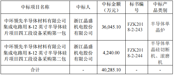 中國儲能網(wǎng)訊:7月12日,昌盛機(jī)電發(fā)布公告,公司于2018年7月11日收到中環(huán)領(lǐng)先半導(dǎo)體材料有限公司委托招標(biāo)代理機(jī)構(gòu)天津市泛亞工程機(jī)電設(shè)備咨詢有限公司發(fā)出的中標(biāo)通知書。