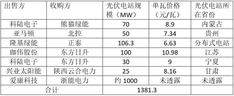 2018年1月,浙江正泰新能源開發(fā)有限公司宣布將向浙江省水利水電投資集團(tuán)有限公司出售其位于甘肅、寧夏等地的9個(gè)光伏電站項(xiàng)目公司各51%的股權(quán),交易總金額為5.39億元,交易所涉及的光伏電站裝機(jī)容量合計(jì)405MW。