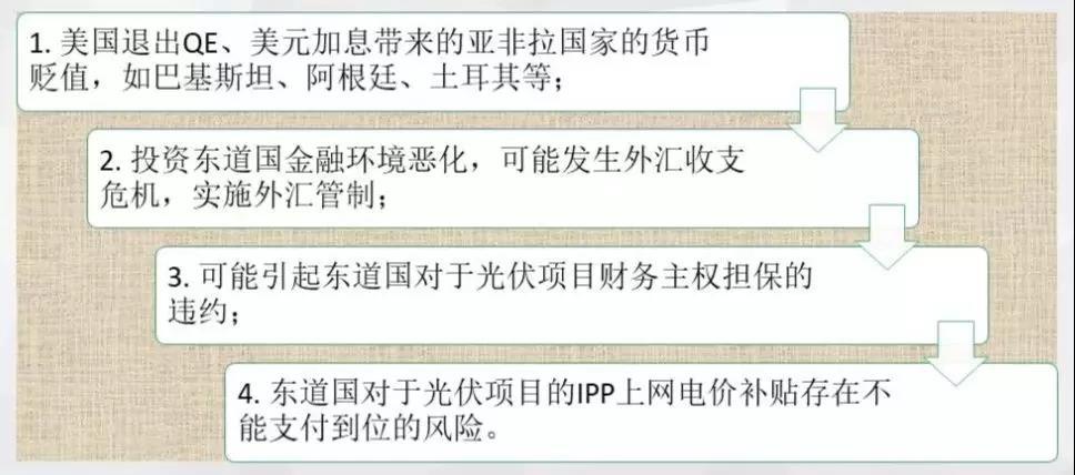 第四個風(fēng)險是電價補貼保障風(fēng)險。宋玉祥提醒走出去的海外企業(yè)、做光伏投資要特別注意這個風(fēng)險。