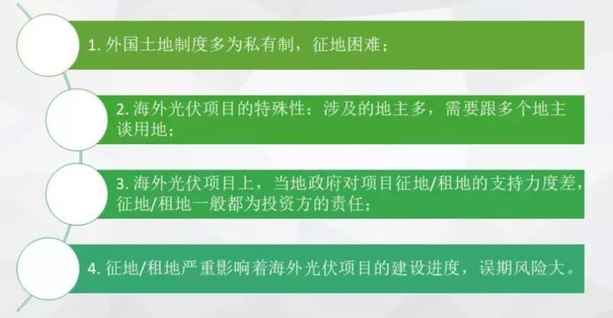 宋玉祥表示,海外光伏用地更難解決,因為國外土地制度多為私有制,有時一個項目會涉及幾十個地主,要跟幾十個地主談合同,所以征地/租地問題是海外光伏項目運作的一個難點。