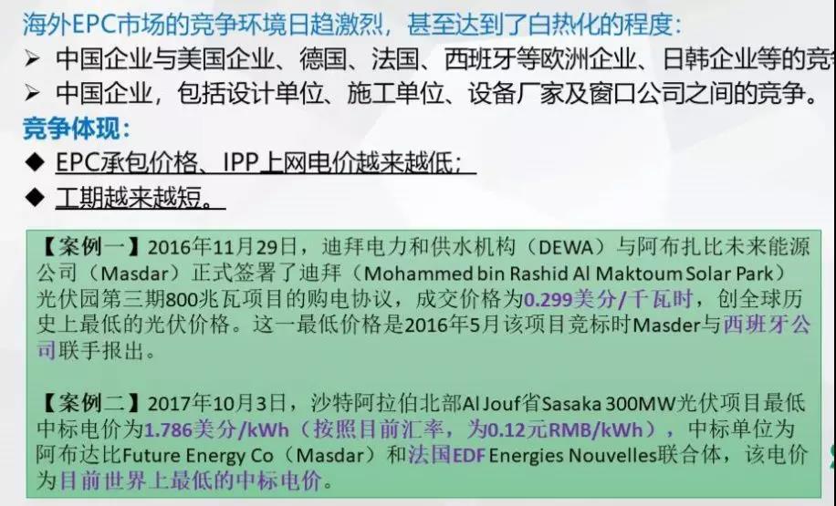 這幾年國際工程市場,包括海外光伏EPC市場變化非常非常大,合作條件越來越苛刻,承包價格越來越低,風(fēng)險越來越大,交易模式在不斷創(chuàng)新,商業(yè)生態(tài)變化也非常大。