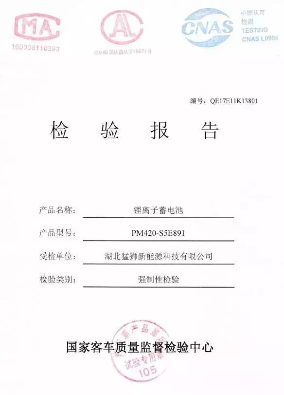 據(jù)悉,湖北猛獅生產(chǎn)的PM420-S5E891 42Ah鋁殼三元材料動力鋰離子蓄電池已經(jīng)通過國家客車質(zhì)量監(jiān)督檢驗中心的強(qiáng)制性檢驗,在電性能、壽命、環(huán)境可靠性、安全性等方面均符合國家相關(guān)標(biāo)準(zhǔn)的要求。隨著湖北猛獅高端鋁殼動力鋰離子電池項目的投產(chǎn),猛獅科技也將在方型三元動力電池方面逐步發(fā)力。