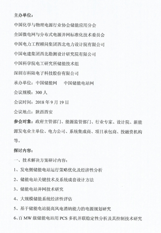 為進(jìn)一步推進(jìn)儲能在發(fā)電側(cè)上的項目規(guī)劃、安全施工、系統(tǒng)集成技術(shù)應(yīng)用、運營模式、電網(wǎng)接入、標(biāo)準(zhǔn)體系、風(fēng)光儲電站考核機制、調(diào)度模式、儲能項目備案、審批流程和體制機制等方面展開深入討論,中國化學(xué)與物理電源行業(yè)協(xié)會儲能應(yīng)用分會聯(lián)合全國微電網(wǎng)與分布式電源并網(wǎng)標(biāo)準(zhǔn)化技術(shù)委員會、中國電力工程顧問集團(tuán)西北電力設(shè)計院有限公司、中國電建集團(tuán)西北勘測設(shè)計研究院有限公司、中國科學(xué)院電工研究所儲能技術(shù)組、深圳市科陸電子科技股份有限公司等單位聯(lián)合主辦“首屆全國發(fā)電側(cè)儲能技術(shù)與應(yīng)用高層研討會”,現(xiàn)將有關(guān)事項通知如下: