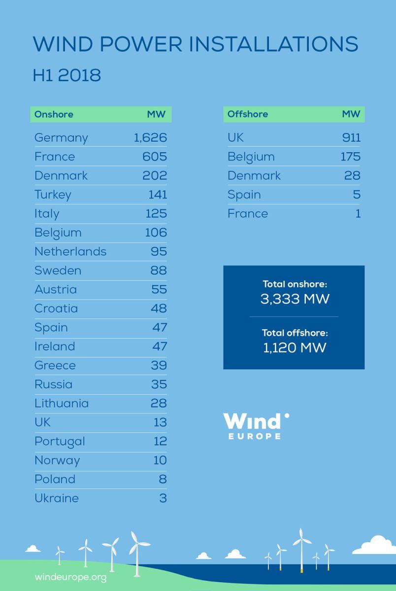 2018年上半年歐洲新增4.5吉瓦風(fēng)電容量