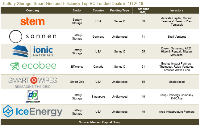 具體來說,2018年上半年,電池儲能,智能電網(wǎng)和能效企業(yè)的全球風險投資(風險投資,私募股權和企業(yè)風險投資)下降18%,為8.39億美元,而2017年上半年則超過10億美元。