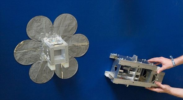瓦西里表示:“Suaineadh實(shí)驗(yàn)的成功意味著我們可以進(jìn)行太空太陽能計(jì)劃的第二步了,也就是研究用于收集太陽能的反射器。當(dāng)前這個(gè)名為‘自動(dòng)膨脹式可適性面板’(SAM)的計(jì)劃將測(cè)試一個(gè)超輕型細(xì)胞結(jié)構(gòu)展開時(shí)的情況。這個(gè)結(jié)構(gòu)一旦展開,就會(huì)變形。它由真空中自動(dòng)膨脹的細(xì)胞組成,可通過納米泵改變獨(dú)立的體積。這個(gè)結(jié)構(gòu)能復(fù)制存在于所有生物體內(nèi)的天然細(xì)胞結(jié)構(gòu)。細(xì)胞的獨(dú)立控制便于我們將這種結(jié)構(gòu)變成一個(gè)收集日光、并將其發(fā)射到太陽能光伏電池板的太陽能集中器。通過組裝數(shù)以千計(jì)的小型個(gè)體單位,同一個(gè)結(jié)構(gòu)還能用于建造大型太空系統(tǒng)。”