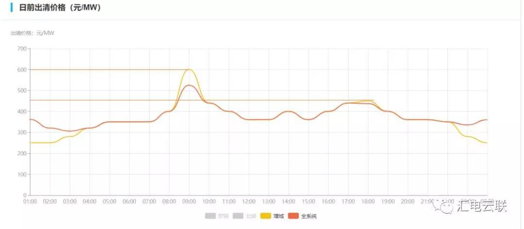 從下圖可知,3030交易員在中長期交易中簽約了800MW均價為391.25元/MW的電量。在日前交易的電能量價格申報過程中,3030交易員在0-900MW的出力區(qū)間報0,900MW-1000MW區(qū)間報了2000元/MW。根據(jù)其在中長期交易成交了800MW的電量,所以在日前電能量申報中0-900MW報0保證了三廠這部分電量能夠出清,保證了日前市場的收益,900MW-1000MW這部分出力區(qū)間作為博弈空間,從“出力中標(biāo)”一圖中,9:00-10:00由于系統(tǒng)負(fù)荷增加,以至于3030交易員雖然在800MW-1000MW申報高價也能中標(biāo)。這也是電力市場的一種典型的交易策略。
