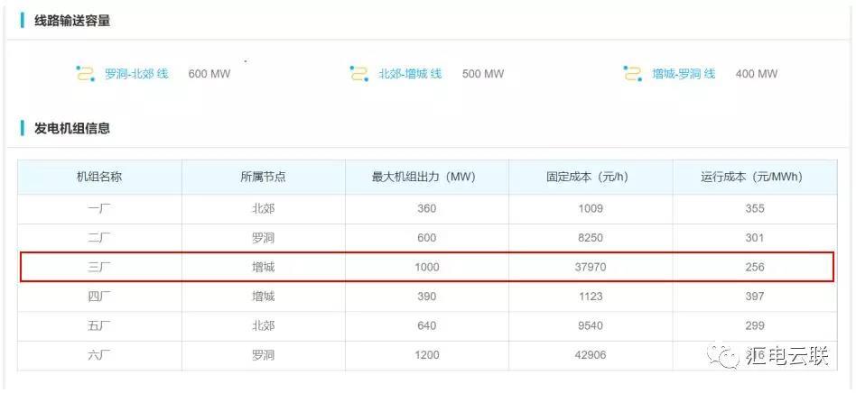 以下是仿真競賽的三節(jié)點(diǎn)模型,從中可以得知各個所在的節(jié)點(diǎn)位置,機(jī)組的最大出力,輸電容量,節(jié)點(diǎn)24小時的負(fù)荷需求等基礎(chǔ)信息。