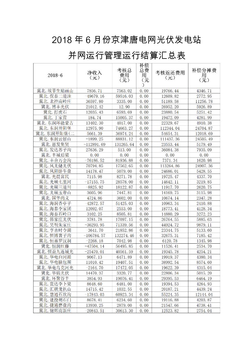 中國儲能網訊:日前,華北能監(jiān)局發(fā)布了2018年6月份京津唐電網111個光伏發(fā)電站并網運行管理運行結算匯總情況。