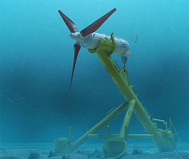 HS1000開發(fā)者是安德里茨•哈默弗斯,這是一種“潮汐發(fā)電”渦輪機(jī)。這是一種型號(hào)的風(fēng)力渦輪機(jī),但卻是安裝在海底,它的葉片會(huì)旋轉(zhuǎn),在潮汐流中發(fā)電。潮汐渦輪機(jī)具有更短的刀片,旋轉(zhuǎn)速度較慢。能量轉(zhuǎn)換需要順著洋流的方向進(jìn)行,這就要傾斜刀片。這種結(jié)構(gòu)設(shè)計(jì)成三腳架,這樣就有最小的碳足跡,而且在海底,安裝到位需要借助重力和額外的壓載物。