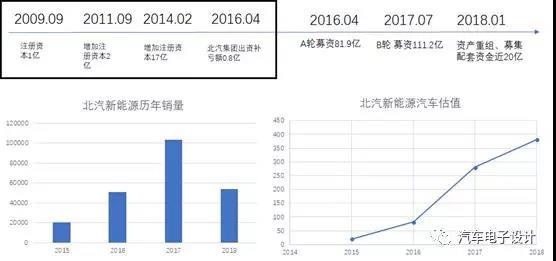 從新能源汽車角度來看,北汽新能源和比亞迪兩者是較為典型的企業(yè),兩個企業(yè)都在新能源乘用車領(lǐng)域邁過了10萬的年銷量等級,從銷售的體量來看與特斯拉相當(dāng),他們的情況到底如何,我們以北汽新能源為主要的入口去剖析。這是第一個車企把新能源汽車獨立出來的企業(yè),北汽新能源成立于2009年10月,注冊資本1億元。公司早期融資主要是由北汽主導(dǎo),累計投資規(guī)模大約21億。在2016和2017年公司分別迚行了A輪30.72億、B輪111.18億融資,總的來說這個企業(yè)已經(jīng)完成融資163億。也是從舊有的車企體系拿到了基礎(chǔ)的開發(fā)體系和車型平臺,算是有底子的了。后續(xù)奇瑞新能源等都是按著這個路子來走,很多車企在新能源汽車?yán)锩嫱度攵嗔?,也需要社會資本來填充。