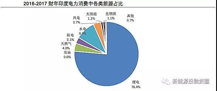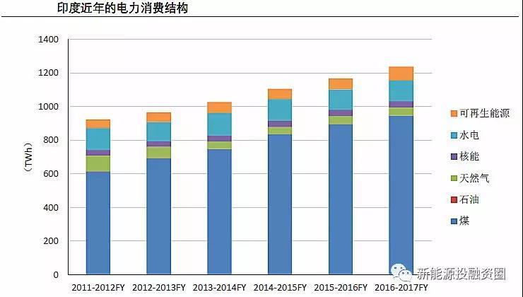 從電力結(jié)構(gòu)來看,由于近年主要的發(fā)電增量來自煤電,印度煤電發(fā)電量占比仍在不斷提升,2016-2017財年達76.4%,較2011-2012財年增長10個百分點。盡管近年印度的風電、光伏也發(fā)展較快,但基數(shù)較小,2016-2017財年風電、光伏合計的發(fā)電量占比僅4.8%,尚未明顯影響到其他電源的發(fā)展。