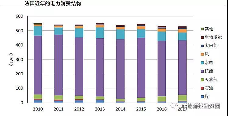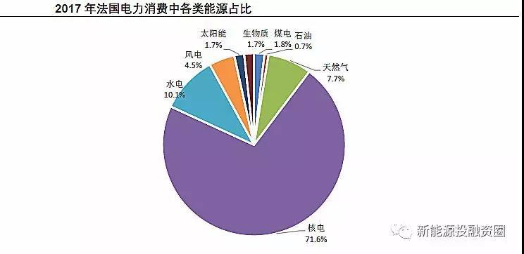在能源結(jié)構(gòu)轉(zhuǎn)型和削減核電占比的背景下,法國核電發(fā)電量占比從2010年的74.1%下降到2017年的71.6%,煤電從3.5%下降到1.8%;風電、光伏合計的發(fā)電量占比則從2010年的1.9%提升至2017年的6.3%。