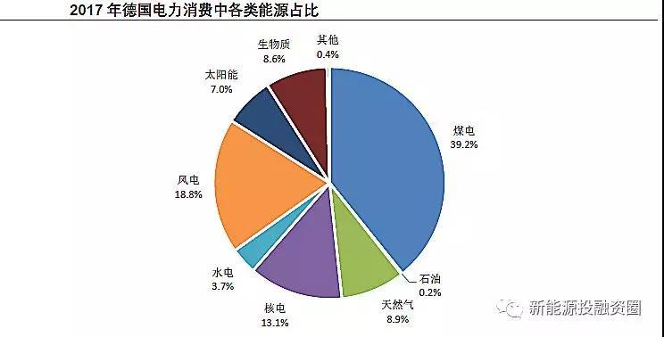 在棄核的背景下,德國可再生能源快速發(fā)展,風電發(fā)電量占比從2010年的7.1%提升至2017年的18.8%,光伏發(fā)電量占比從2.2%提升至7.0%。