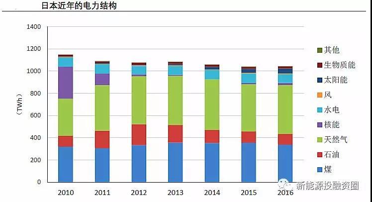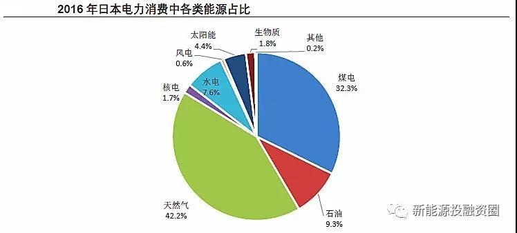 為了彌補核電的空缺,日本火電(包括天然氣和煤電)發(fā)電量占比明顯提升。與此同時,光伏也得到大力發(fā)展,得益于2012年7月啟動的固定上網(wǎng)電價政策,日本光伏裝機迅猛增長,發(fā)電量占比迅速提升,2016年光伏發(fā)電量占比約4.4%。