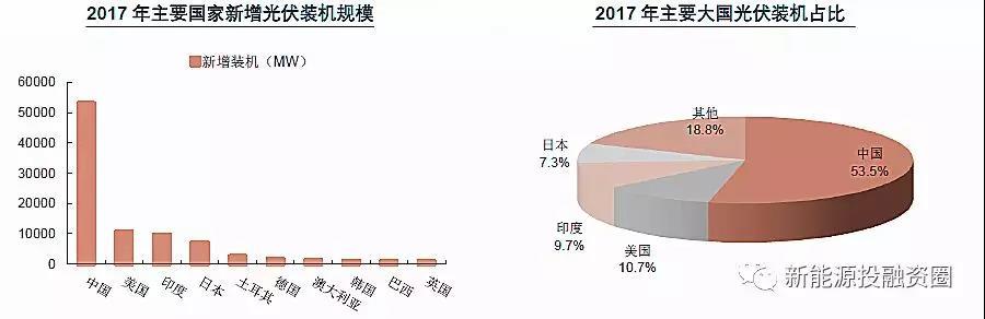 中國作為全球最大的光伏市場,2017年新增裝機超過全球的一半,近兩年中國市場基本左右了全球市場趨勢,2016、2017年中國市場的新增裝機增量占到全球市場增量的70%、82%。