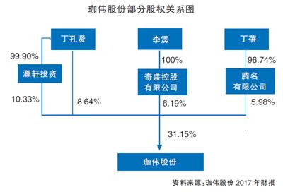 從股權(quán)結(jié)構(gòu)上看,丁孔賢個(gè)人占股8.68%,遠(yuǎn)低于第一大股東振發(fā)能源26.39%的股份。但丁孔賢通過(guò)灝軒投資間接持有珈偉股份10.33%的股權(quán),再加上丁孔賢女兒丁蓓所控制的奇盛控股持有6.19%,女婿李靂控制的騰名占股5.98%,3人為一致行動(dòng)人,合計(jì)持股31.14%,為珈偉股份的實(shí)際控制人,對(duì)公司有實(shí)際控制權(quán)。