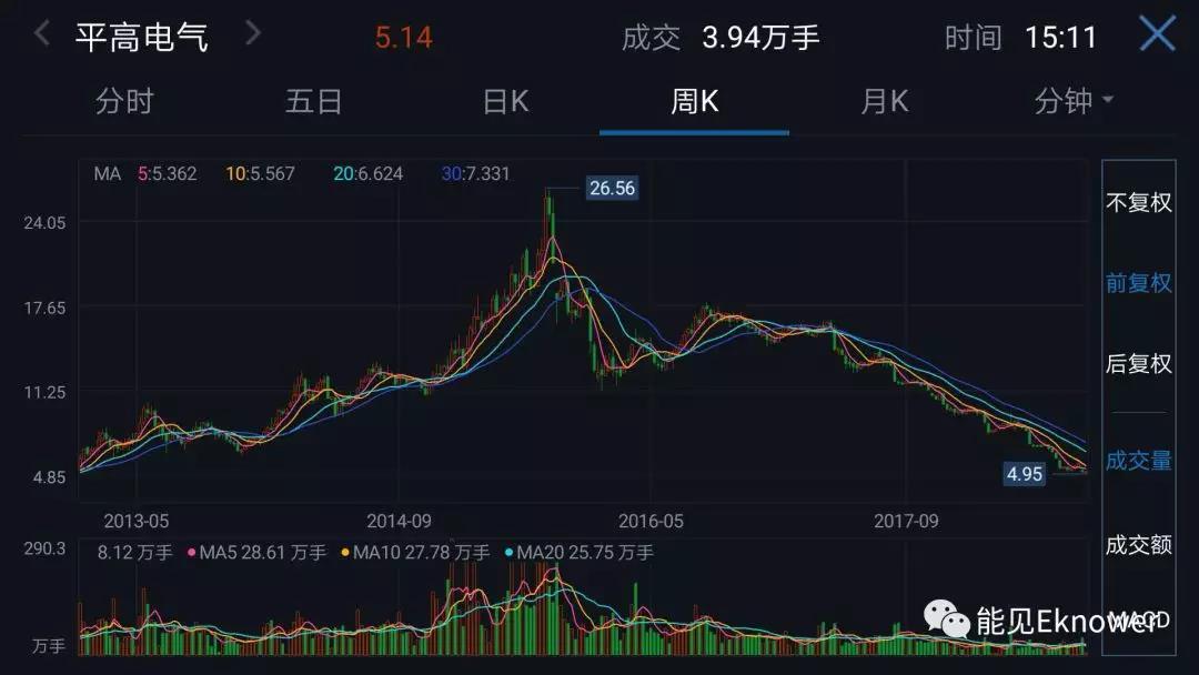 伴隨業(yè)績的下降,和對(duì)未來的預(yù)期,股價(jià)也是一落千丈。8月6日,平高電氣股價(jià)盤中一度跌至4.95元/股,創(chuàng)下近十年來新低。