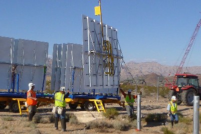 這個項目已經(jīng)做了很長一段時間。布萊特索斯公司第一次提出這一項目是在2007年夏天。批準用了三年。建設(shè)曾暫時放慢,以適應照顧和重新安置沙漠龜,這是一個瀕危物種,發(fā)現(xiàn)了較大的數(shù)量,超過預估。這一項目發(fā)電,需要使用反射鏡,集中太陽光加熱水,以驅(qū)動蒸汽渦輪機,目前預計明年完工。