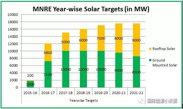 中國(guó)儲(chǔ)能網(wǎng)訊:2015年印度莫迪政府制定了到2022年實(shí)現(xiàn)光伏裝機(jī)達(dá)到100吉瓦的宏偉規(guī)劃,其中公共事業(yè)級(jí)地面光伏60吉瓦,屋頂光伏40吉瓦。三年以后,印度光伏進(jìn)展到底怎樣?