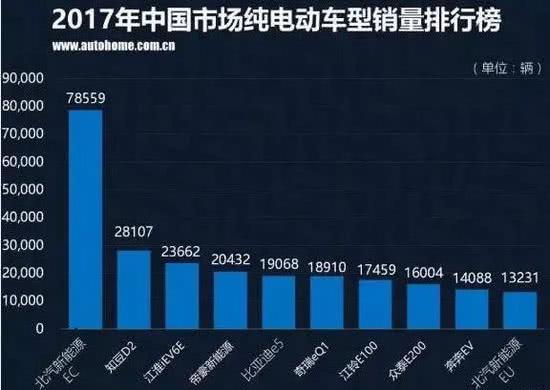 ▲(北汽新能源EC系列占據(jù)中國電動汽車銷量排行榜)