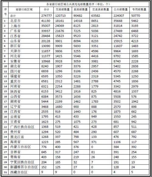 公共充電基礎(chǔ)設(shè)施數(shù)據(jù)省、區(qū)、市情況(不含港、澳、臺(tái)),省級(jí)行政區(qū)域內(nèi)所擁有的公共類充電樁數(shù)量前十的分別為:北京41130個(gè)、上海35007個(gè)、廣東33937個(gè)、江蘇28464個(gè)、山東20128個(gè)、浙江13090個(gè)、天津11657個(gè)、河北11377個(gè)、安徽10968個(gè)、湖北8240個(gè)。