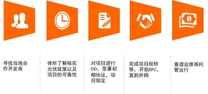 為了避免海外項目的風(fēng)險,需要注重開發(fā)流程的每一步,在每一步都做好調(diào)研和核實:第一步,尋找當(dāng)?shù)氐拈_發(fā)合作商,這是最難的一步,開發(fā)商的能力影響著整個項目,自行開發(fā)項目耗時又比較長,所以在開發(fā)合作商需要著重考慮。第二步;通過律所了解當(dāng)?shù)毓夥撸⒑藢嶍椖靠煽啃?第三步,對項目進(jìn)行DD(due diligence,盡職調(diào)查)、簽署初期協(xié)議,項目鎖定;第四步,完成項目權(quán)轉(zhuǎn)移,開始EPC,直到并網(wǎng);第五步,托付優(yōu)質(zhì)的運維商進(jìn)行運行維護(hù)。