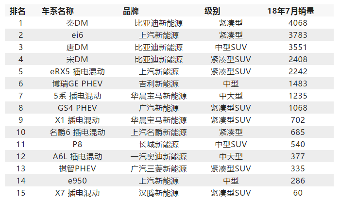 最后,我們來看一下7月插電混動(dòng)汽車總排行榜