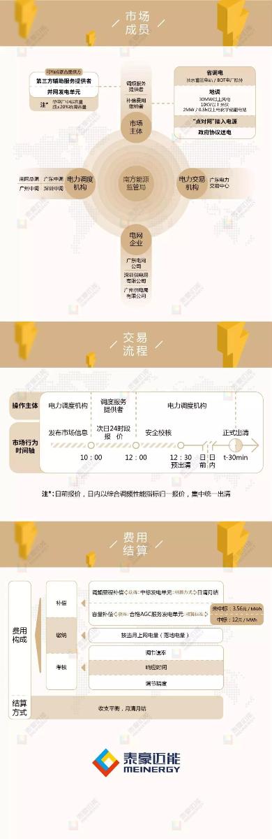 中國儲能網訊:為落實國家和廣東省電力體制改革相關實施方案,完善市場機制,國家能源局南方監(jiān)管局近日發(fā)布了《廣東調頻輔助服務市場交易規(guī)則(試行)》文件,預示廣東調頻輔助服務于2018年9月1日正式開始試運行及結算,為即將開啟的電力現貨市場奠定了堅實的基礎。 知道你們看膩了文字解讀,所以這次邁能研究院將教你如何一眼看全該試行文件。