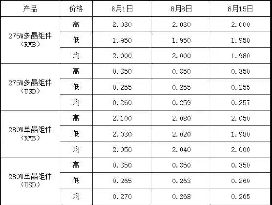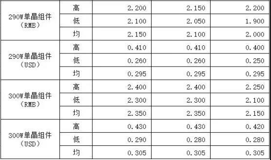 目前,各大組件企業(yè)的長期庫存產(chǎn)品基本售空,低效組件供給減少,一線企業(yè)出貨主要為多晶270-275W和單晶285-290W,市場價(jià)格平穩(wěn)下降。