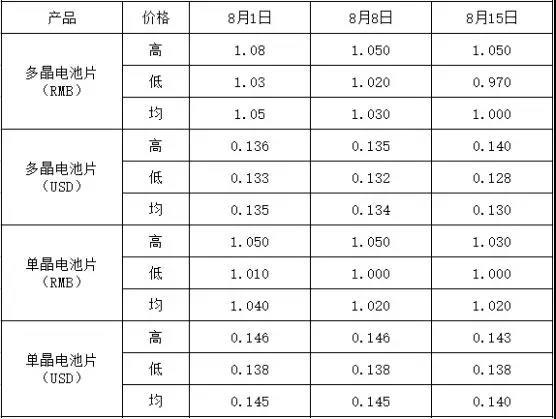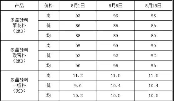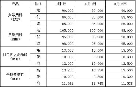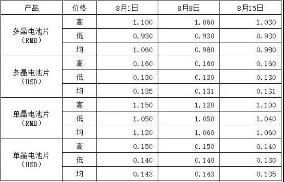 從統(tǒng)計(jì)信息來看,多晶用料價(jià)格基本穩(wěn)定,單晶開始出現(xiàn)小幅下跌??紤]到單晶用料有相當(dāng)一部分來自海外,而近期人民幣對美元有所貶值,預(yù)計(jì)硅料采購成本(人民幣價(jià)格)會上漲。
