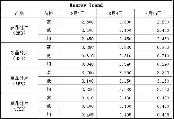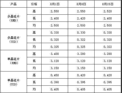 受匯率變動影響,硅片海外報(bào)價(jià)可能下滑。考慮到硅片通常不受“雙反”等貿(mào)易保護(hù)措施影響,價(jià)格趨勢較為明朗。
