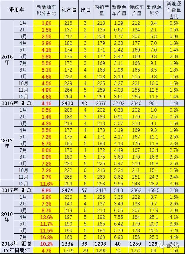 18年1-7月新能源乘用車產(chǎn)量40萬臺(tái),較2017年增長(zhǎng)95%,而新能源積分達(dá)到128萬分,較17年同期增長(zhǎng)116%。