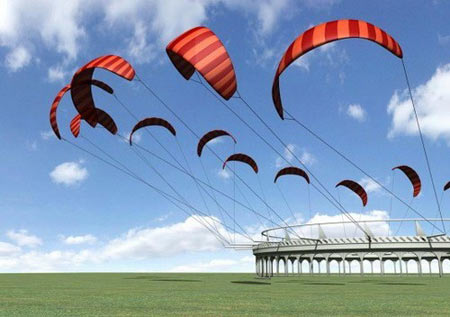 現(xiàn)代商業(yè)風(fēng)車的葉片聳立在距離地面大約80米的高空,風(fēng)速大約是每秒5米。然而在800米的高空,風(fēng)速上升到每秒7米,因此能產(chǎn)生更大能量。事實(shí)上,要制造一個(gè)可以利用800米高空的風(fēng)能渦輪機(jī)根本就不可能,但是風(fēng)箏風(fēng)力發(fā)電機(jī)很容易就能達(dá)到這個(gè)高度。KiteGen采用了多個(gè)降落傘形、大翼展的高空風(fēng)箏,宣稱能夠產(chǎn)生十億瓦特的綠色低成本電能。