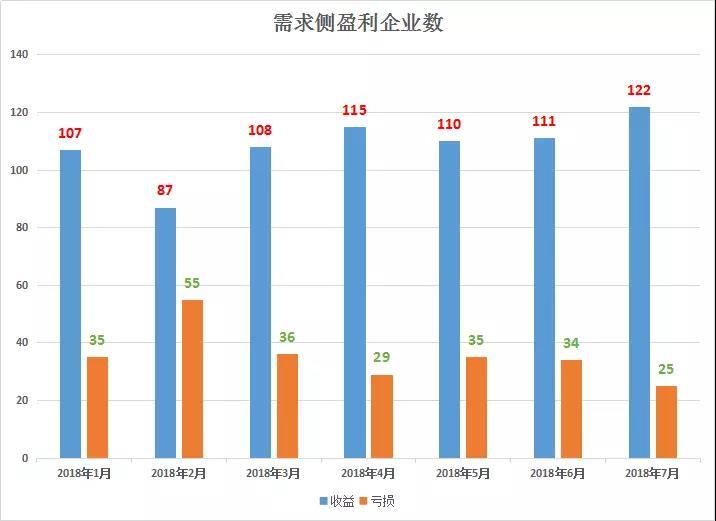 7月份需求側(cè)企業(yè)受益為正的有122家,也是今年至今需求側(cè)收益為正最多的一次。