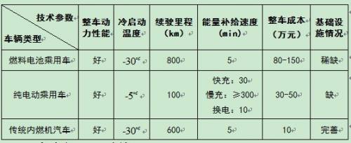 表2 純電動、燃料電池及傳統(tǒng)內(nèi)燃機對比分析表