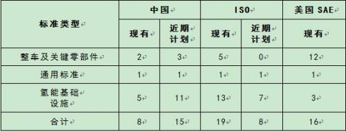 經(jīng)過聯(lián)系兩個五年電動汽車科技計劃攻關,我國累計頒布了56條國家或行業(yè)電動汽車技術標準,初步建立了電動汽車技術標準體系,基本能夠滿足當前電動汽車科學研究、產(chǎn)品試驗、產(chǎn)業(yè)化生產(chǎn)指導、產(chǎn)品市場準入和商業(yè)化示范推廣應用需要,被公認為處于世界前列。但分析已頒布技術標準發(fā)現(xiàn),我國燃料電池汽車相關技術標準只有8項,而同期ISO有19項,美國SAE有16項,中國燃料電池汽車技術標準嚴重缺乏,如表5。與此同時,在現(xiàn)有8項燃料電池汽車技術標準中,其中5項主要圍繞氫能基礎設施,而燃料電池汽車整車和零部件分別只有1項,燃料電池汽車整車及關鍵零部件技術標準嚴重缺乏,因此在“十二五”期間,國家應該加大投入,進行燃料電池汽車(含整車和關鍵零部件的設計、生產(chǎn)和試驗等)技術標準研究,建立燃料電池汽車技術標準體系。