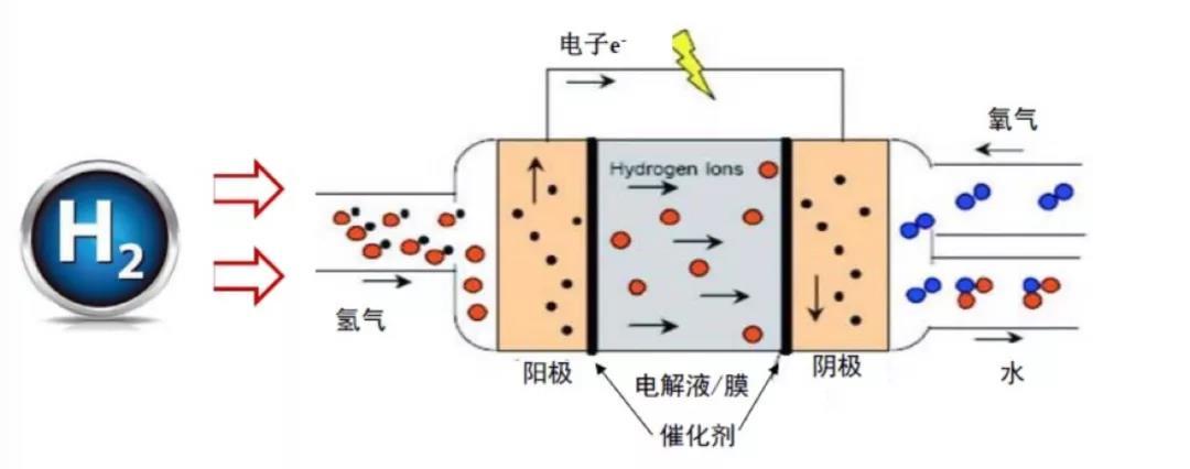 氫分子又小又活潑。它透過質(zhì)子膜時,電子被從分子上剝離,只留下帶正電的氫質(zhì)子通過,氫質(zhì)子被吸引到薄膜另一側(cè)的電極與氧分子結(jié)合。電解質(zhì)薄膜兩側(cè)的電極板將氫氣拆分成氫離子(正電)和電子、將氧氣拆分成氧離子(負電)和電子,電子在電極板之間形成電流,兩個氫離子和一個氧離子結(jié)合成為水,是反應(yīng)的唯一廢物。