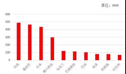 巴基斯坦、巴西、阿聯(lián)酋和以色列6月出貨量都較5月衰退,烏克蘭則月增28%到120MW,是2018年第1次進(jìn)入前5大出口國。