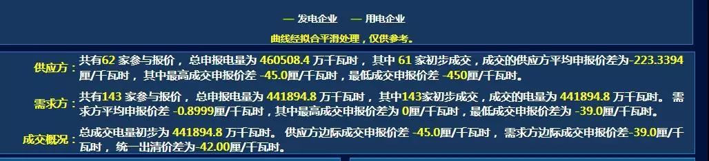 供應(yīng)方:共有62家參與報價, 總申報電量為460508.4134萬千瓦時, 其中61家成交, 成交的供應(yīng)方平均申報價差-223.3394厘/千瓦時, 其中最高成交申報價差為-45.0厘/千瓦時, 最低成交申報價差為-450厘/千瓦時。