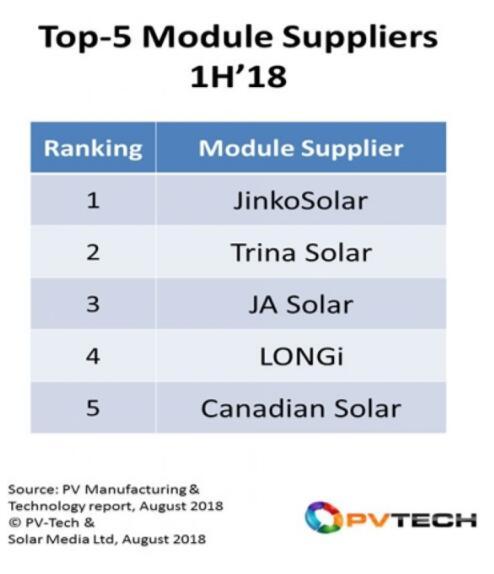 中國(guó)儲(chǔ)能網(wǎng)訊:全球光伏行業(yè)前五大光伏組件供應(yīng)商在2018年上半年出貨量超過20吉瓦,同比增長(zhǎng)10%。