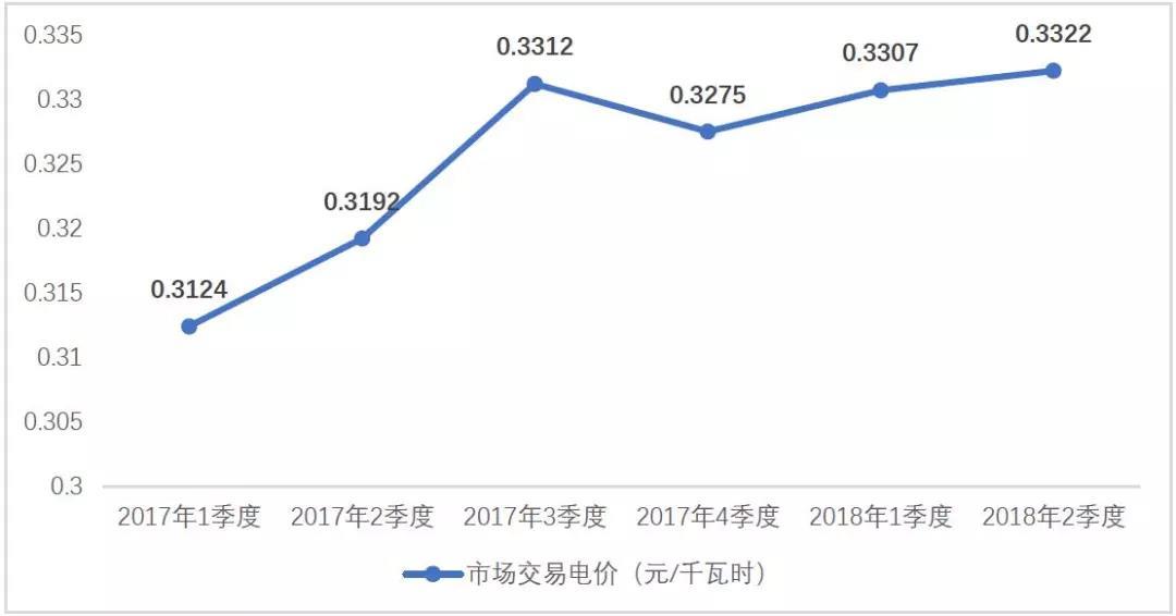 2018年2季度,大型發(fā)電集團(tuán)煤電市場交易平均電價為0.3322元/千瓦時,同比回升4.07%。