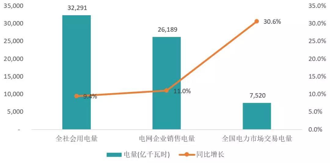 圖1 上半年全國全社會用電量,市場化交易電量情況