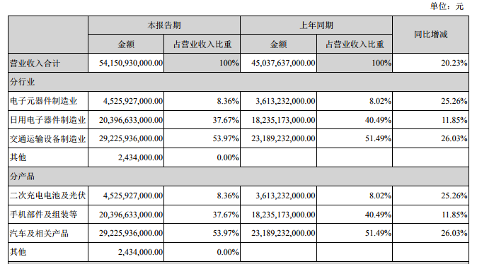 中國(guó)儲(chǔ)能網(wǎng)訊:8月29日晚間,比亞迪發(fā)布2018年半年度報(bào)告,上半年公司實(shí)現(xiàn)營(yíng)收541.51億元,同比增長(zhǎng)20.23%,其中汽車(chē)及相關(guān)產(chǎn)品業(yè)務(wù)292.26億元,同比增長(zhǎng)26.03%,占比53.97%,二次充電電池及光伏業(yè)務(wù)45.26億元,同比增長(zhǎng)25.26%,占比8.36%;實(shí)現(xiàn)歸屬于上市公司股東的凈利潤(rùn)4.79億元,同比下降72.19%。