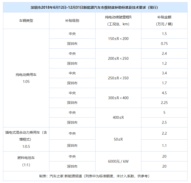 深圳市2018年6月12日-12月31日新能源汽車市級財(cái)政補(bǔ)助標(biāo)準(zhǔn)及技術(shù)要求(現(xiàn)行)