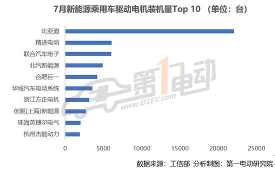 分車輛類型來看,新能源乘用車領(lǐng)域,比亞迪憑借乘用車的優(yōu)異產(chǎn)量表現(xiàn),電機(jī)裝機(jī)量遙遙領(lǐng)先,達(dá)22083臺。這一數(shù)字幾乎是排位第2到第5位的精進(jìn)電動、聯(lián)合汽車電子、北汽新能源和合肥巨一的裝機(jī)量總和。