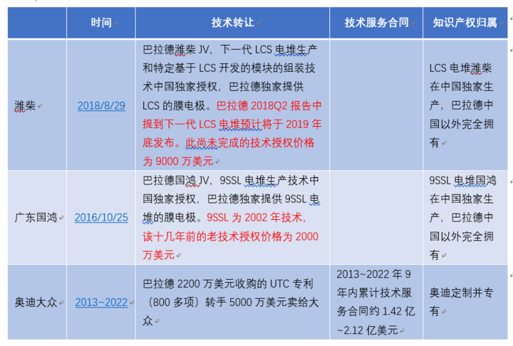 此外,巴拉德于2015年將其收購的UTC公司的燃料電池專利(800多項燃料電池相關(guān)專利)以5000萬美元的價格轉(zhuǎn)讓給大眾汽車。