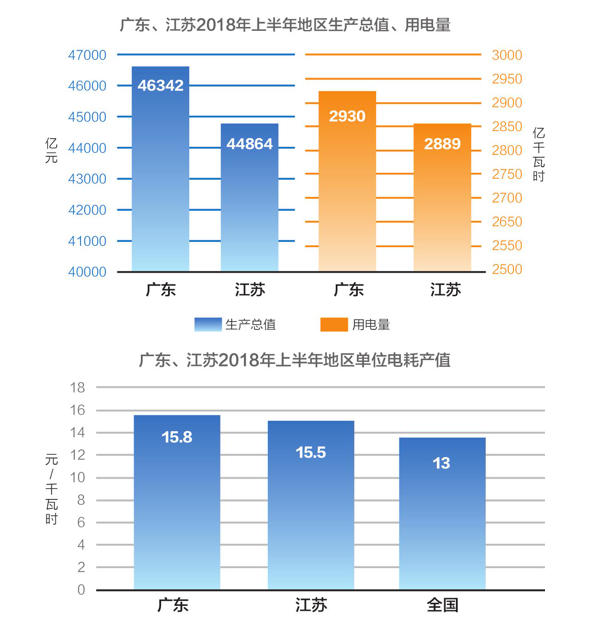 廣東、江蘇GDP、用電量合計(jì)占全國(guó)總量的21%、18.7%