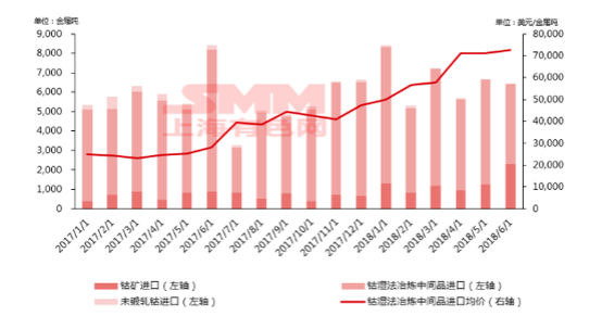 中國(guó)儲(chǔ)能網(wǎng)訊:2018年上半年中國(guó)鈷原料進(jìn)口約3.94萬噸金屬噸,環(huán)比增長(zhǎng)27.5%,同比增長(zhǎng)12%其中鈷礦0.78萬噸,環(huán)比增長(zhǎng)101%,同比增長(zhǎng)87%;鈷濕法冶煉中間品3.16萬噸,環(huán)比增長(zhǎng)17%,同比增長(zhǎng)2%。