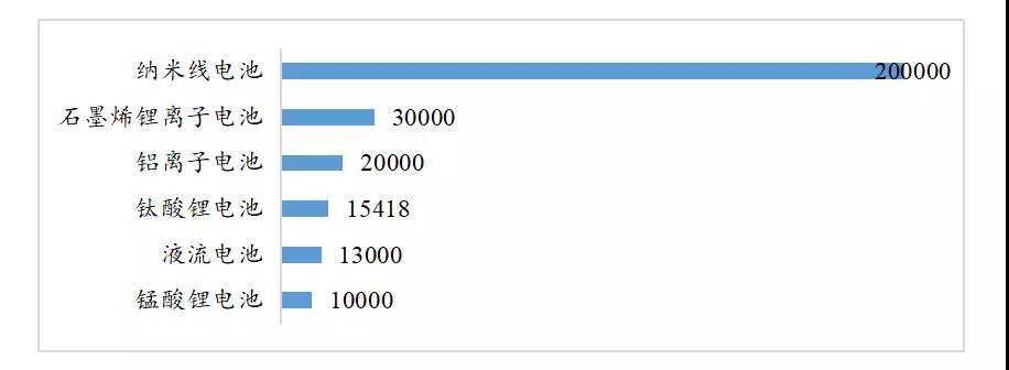 通過對收集的典型創(chuàng)新案例技術(shù)指標梳理,可以發(fā)現(xiàn),目前一些產(chǎn)品的關(guān)鍵指標已經(jīng)得到提升。在能量密度方面,鋁空氣電池能量密度達到780Wh/kg,鋰硫電池達到350Wh/kg,固態(tài)電池達到360Wh/kg;在充電倍率方面,典型創(chuàng)新性產(chǎn)品最高充電倍率已經(jīng)超過100C。在循環(huán)壽命方面,典型創(chuàng)新產(chǎn)品已經(jīng)能夠超過15000次。